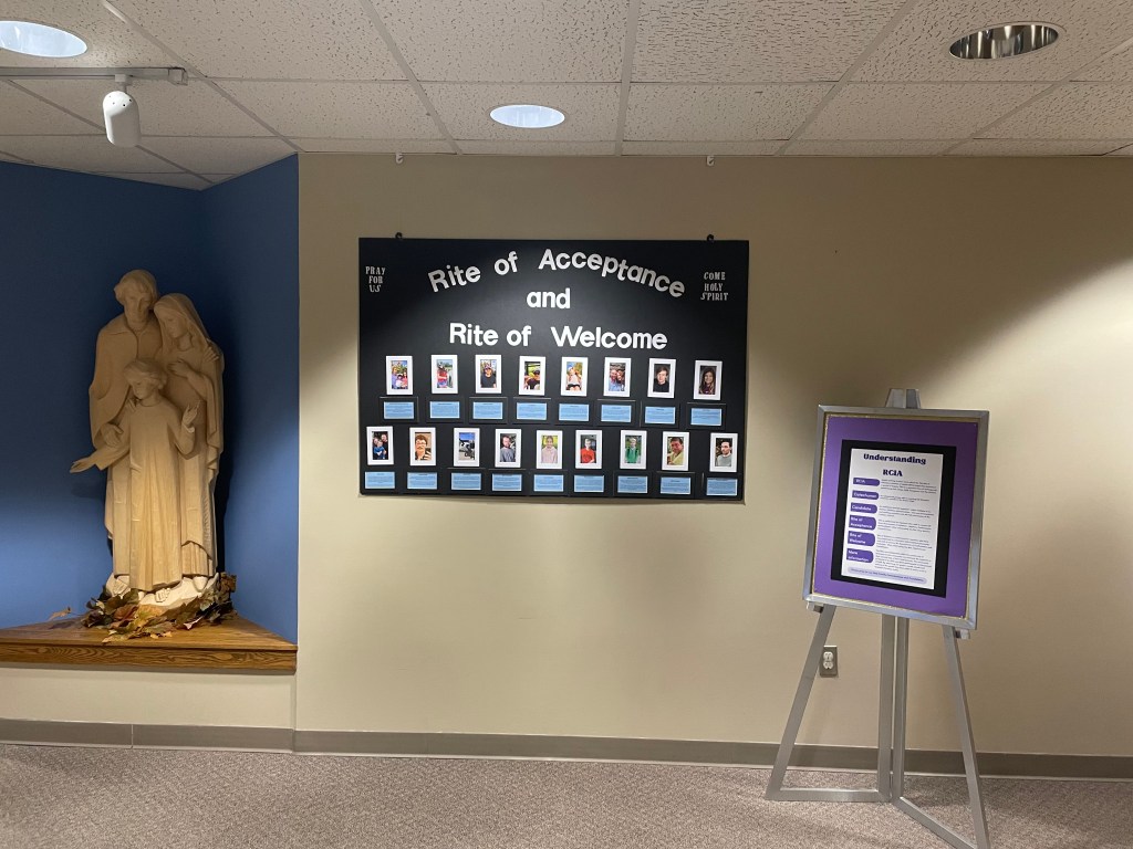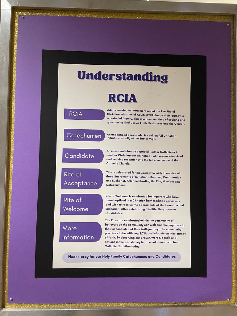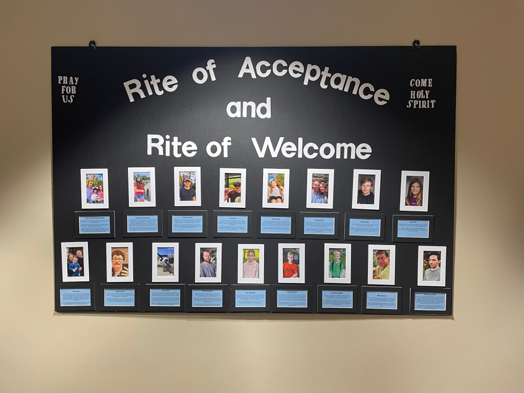 Biography Board: This tri-fold board is displayed in the narthex throughout the fall beginning on the weekend of Rite of Acceptance/Welcoming: From this template, a director makes a small summary of each person and places it next to a picture of this person. The purpose is that the parish prays for and familiarizes themselves with those journeying into the Church within the OCIA.